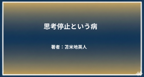 Latest Article X Facebook はてブ Pocket LINE コピー 2022.07.172022.08.19 【書評】弁護士に依頼する前に読む本 著者:山崎武也2025年12月1日 【書評】エッセンシャル思考 著者:グレッグ・マキューン2025年11月3日 【書評】会社はこれからどうなるのか その2 著者:岩井克人2025年10月6日 【書評】会社はこれからどうなるのか その1 著者:岩井克人2025年9月1日 【書評】変な人が書いた成功法則 著者:斎藤一人2025年8月4日 【書評】未来年表 著者:高橋洋一2025年7月7日 【書評】思考停止という病 著者:苫米地 英人2025年6月2日 【書評】地頭力のはじめ方 著者:細谷 功2025年5月12日 【書評】幸福の資本論 その2 著者:橘玲2025年4月7日 【書評】幸福の資本論 その1 著者:橘玲2025年3月3日 【書評】幸せになる勇気 その2 著者:岸見一郎/古賀史健2025年2月3日 【書評】幸せになる勇気 その1 著者:岸見一郎/古賀史健2025年1月6日