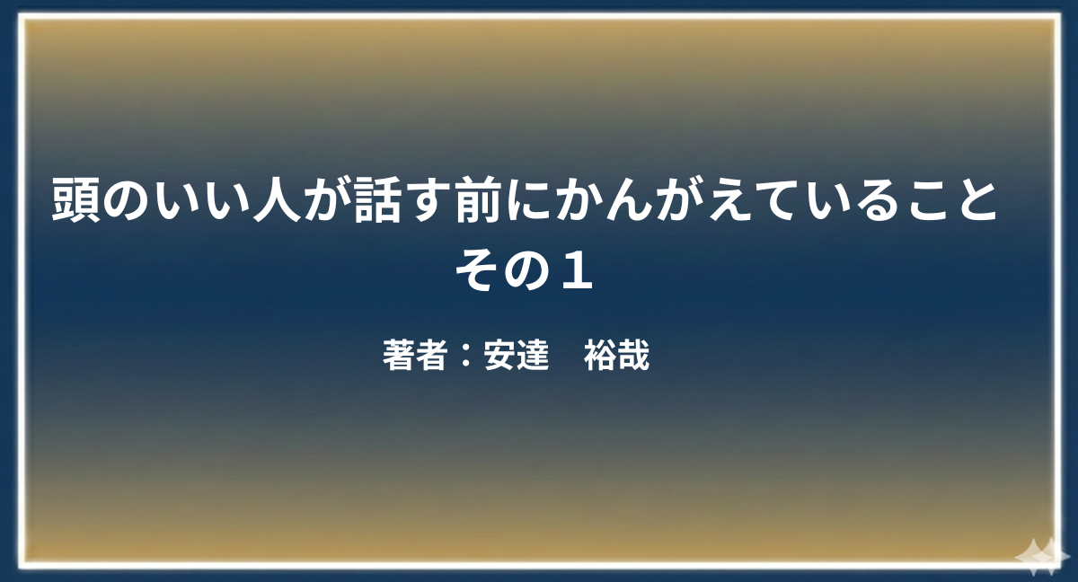 今回は「頭のいいひとが話す前に考えていること」という本の書評です。