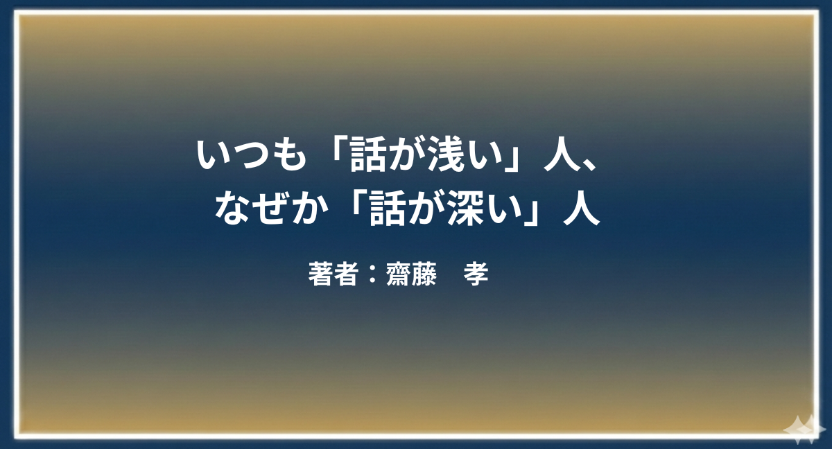 今回は いつも「話が浅い」人、なぜか「話が深い」人 という本の書評です。